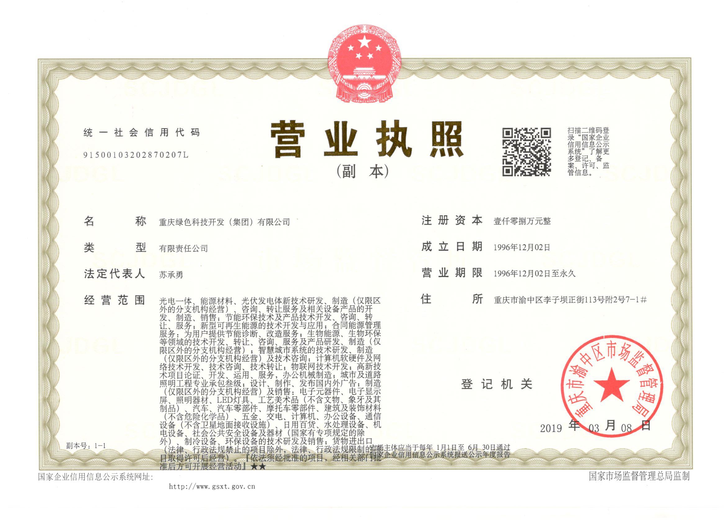 重慶綠色科技開(kāi)發(fā)(集團(tuán))有限公司是國(guó)家高新技術(shù)企業(yè)、重慶市LED智能控制技術(shù)工程研究中心、重慶市中小企業(yè)技術(shù)研發(fā)中心、重慶市高成長(zhǎng)性科技企業(yè)。擁有一支專(zhuān)業(yè)的多色溫LED智慧照明科研團(tuán)隊(duì),獲得國(guó)家發(fā)明等各類(lèi)自主知識(shí)產(chǎn)權(quán)專(zhuān)利100余項(xiàng)。公司是以物聯(lián)網(wǎng)全光譜多色溫LED智慧路燈及“智慧城市”城市照明夜景燈飾聯(lián)動(dòng)三級(jí)管理共享平臺(tái)為主要研發(fā)方向的現(xiàn)代科技型企業(yè),經(jīng)營(yíng)銷(xiāo)售物聯(lián)網(wǎng)全光譜多色溫LED智慧路燈系列照明產(chǎn)品和教室照明護(hù)眼燈,推廣合同能源管理(EMC)照明節(jié)能改造項(xiàng)目、節(jié)能減排技術(shù)以及節(jié)能項(xiàng)目設(shè)計(jì)、融資、改造,咨詢(xún)服務(wù)、銷(xiāo)售、工程實(shí)施和技術(shù)推廣。