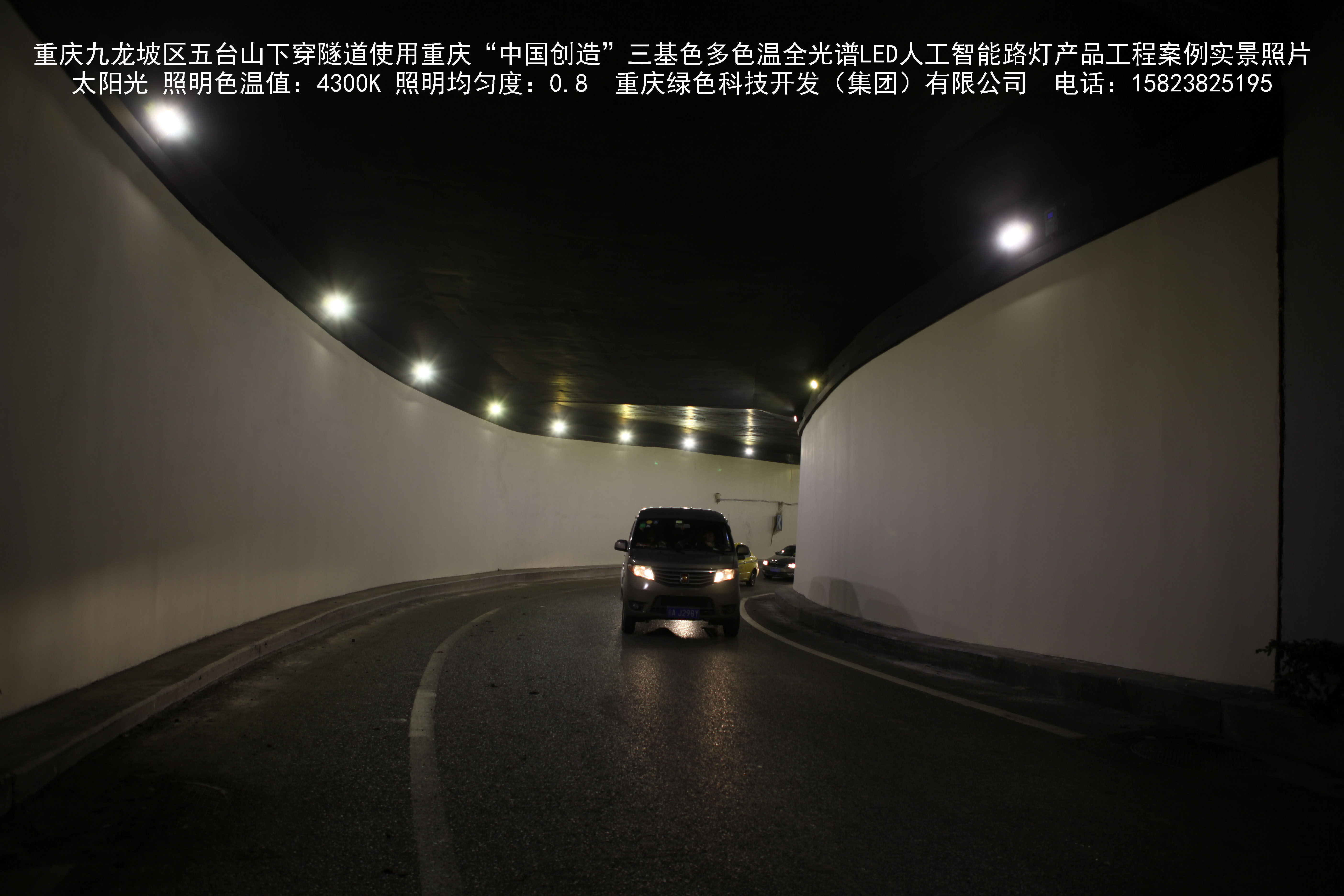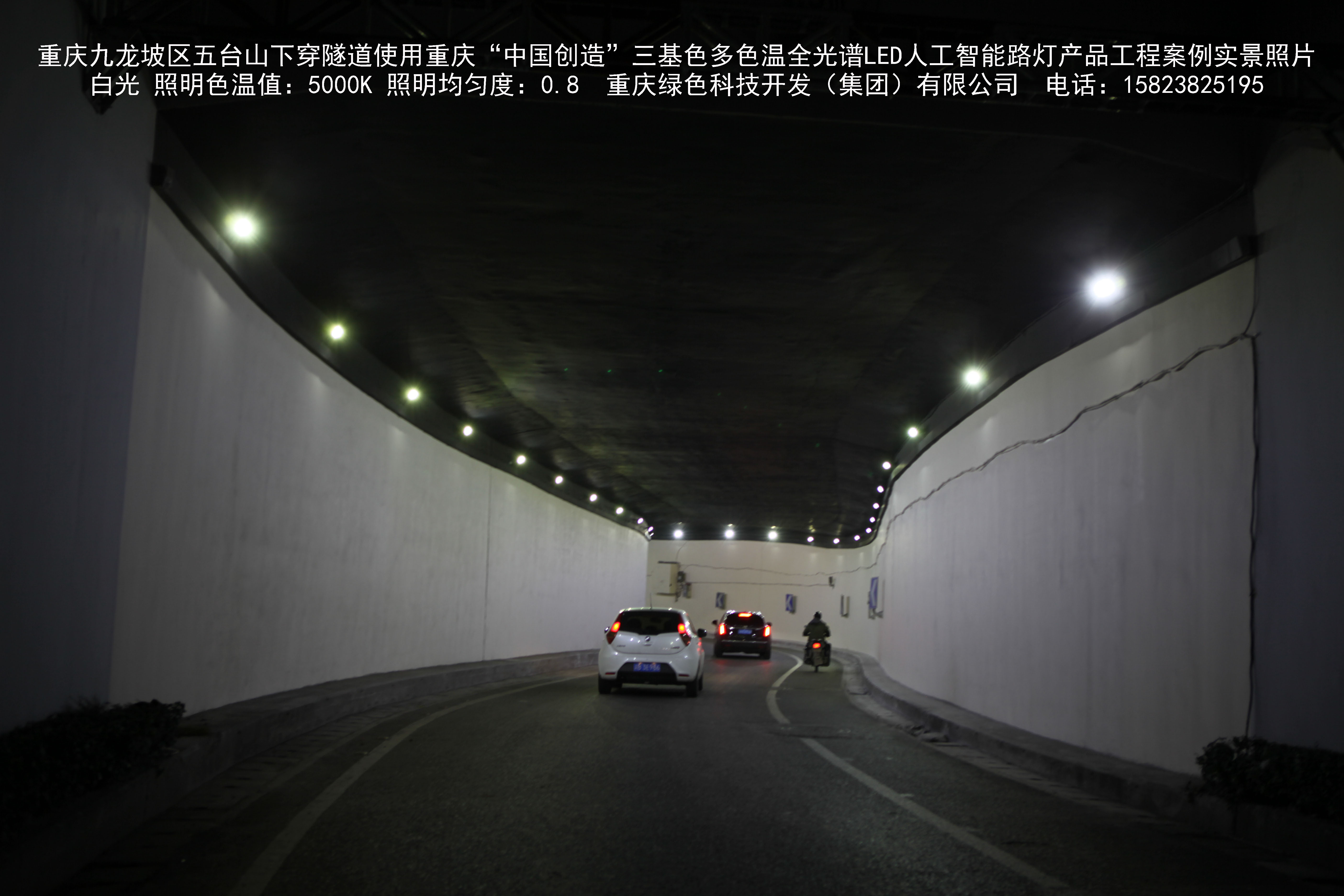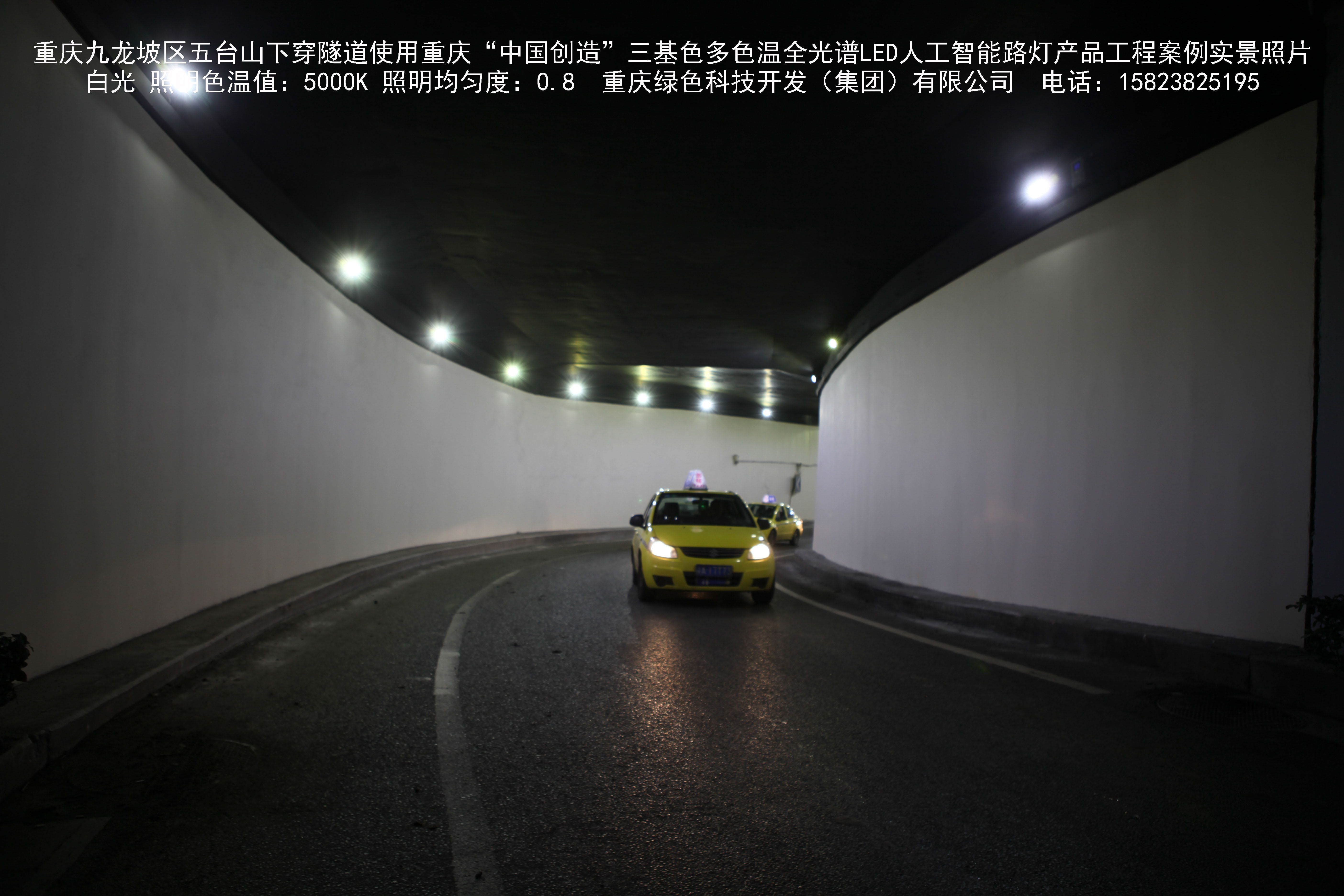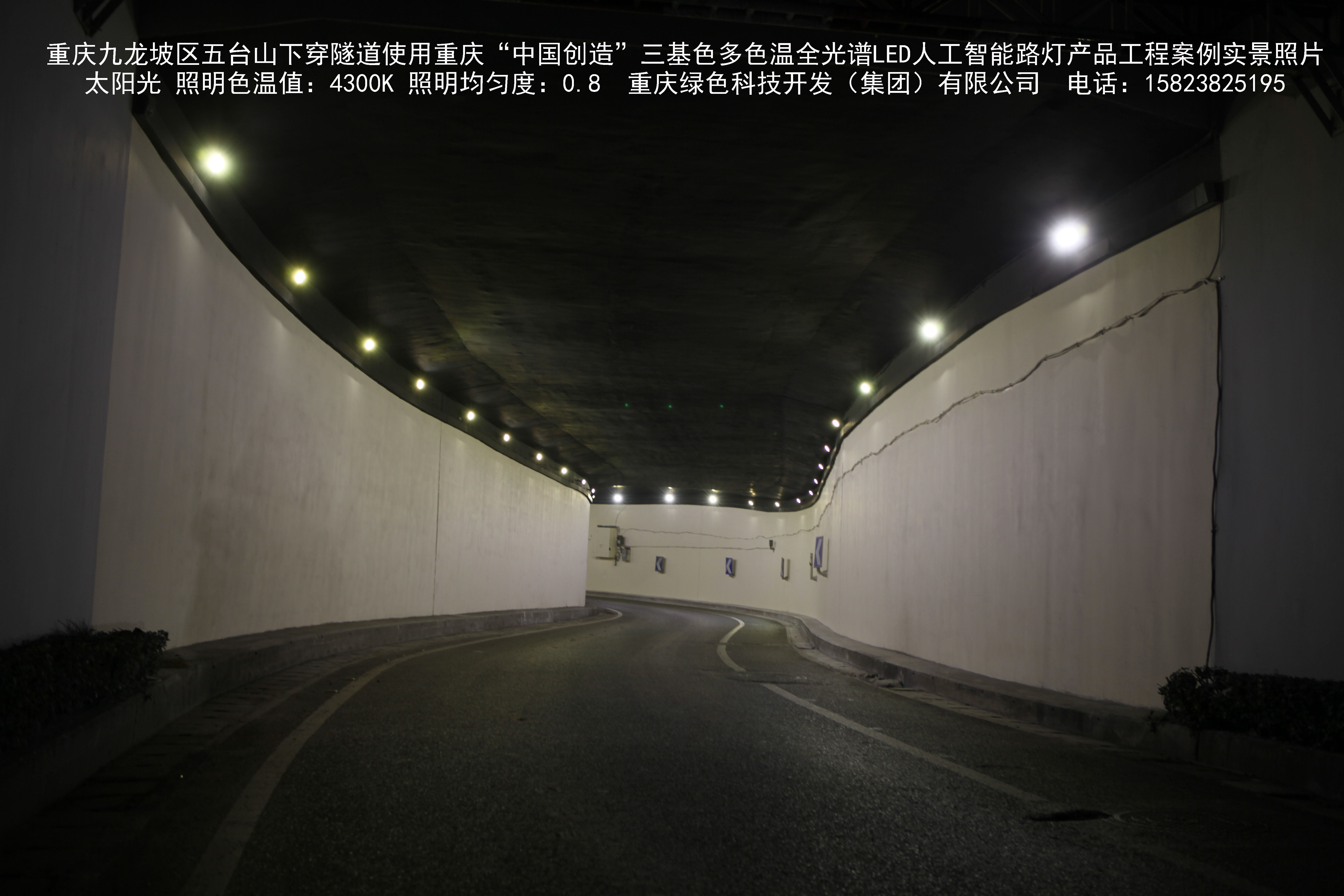 重慶市九龍坡區(qū)五臺山下穿隧道使用我司研造的重慶“中國創(chuàng)造” 三基色多色溫全光譜LED人工智能路燈產(chǎn)品工程案例