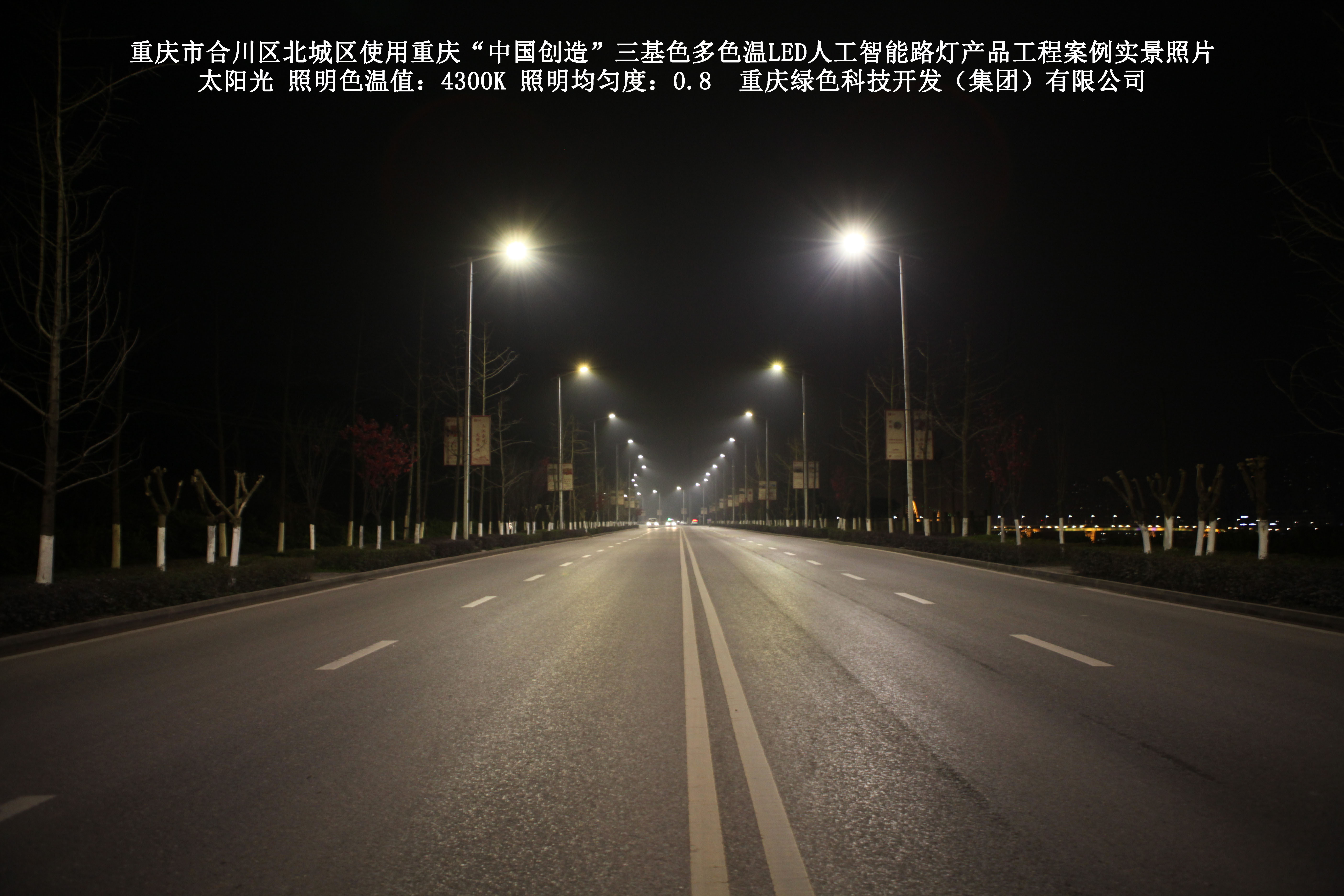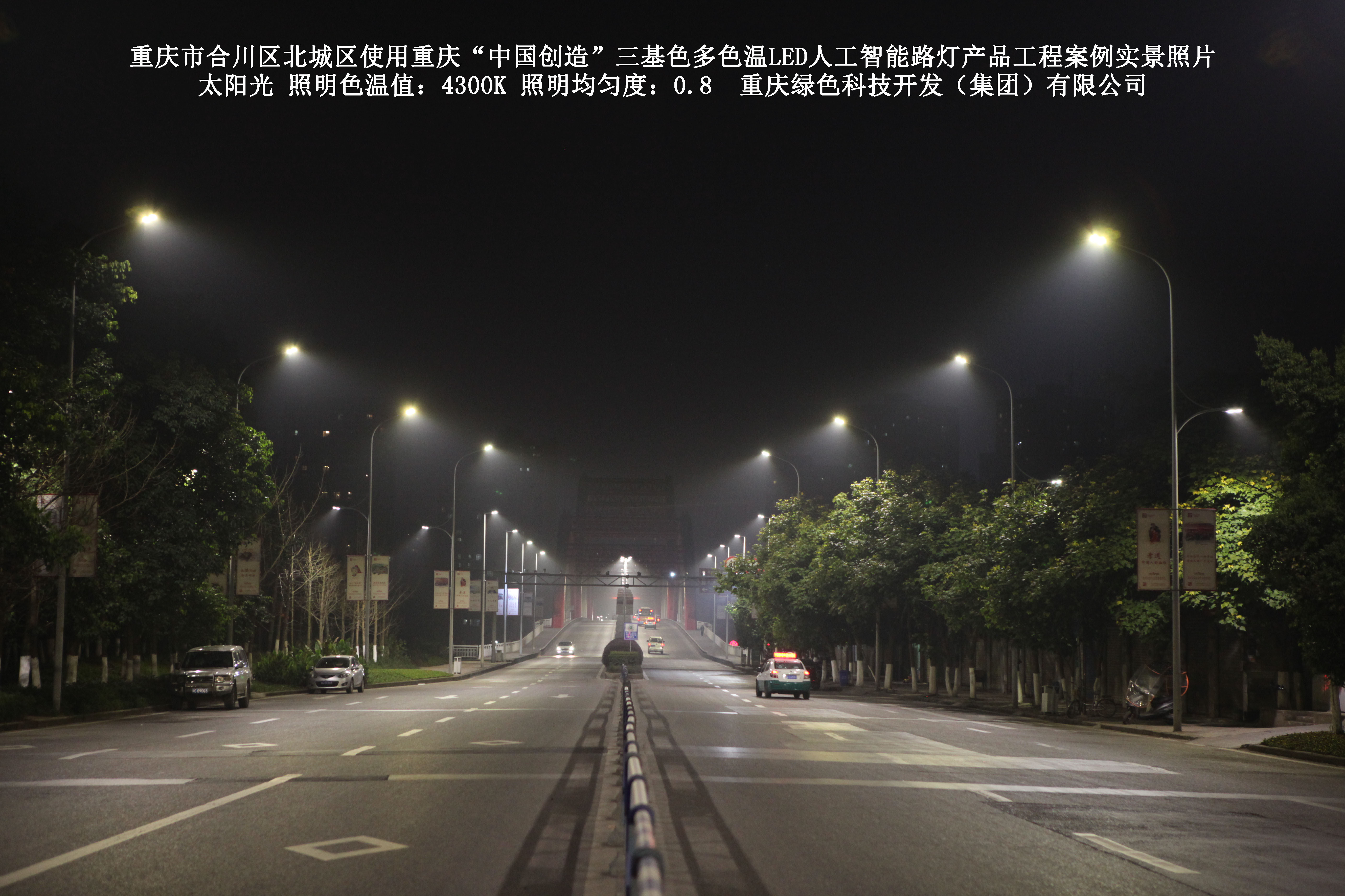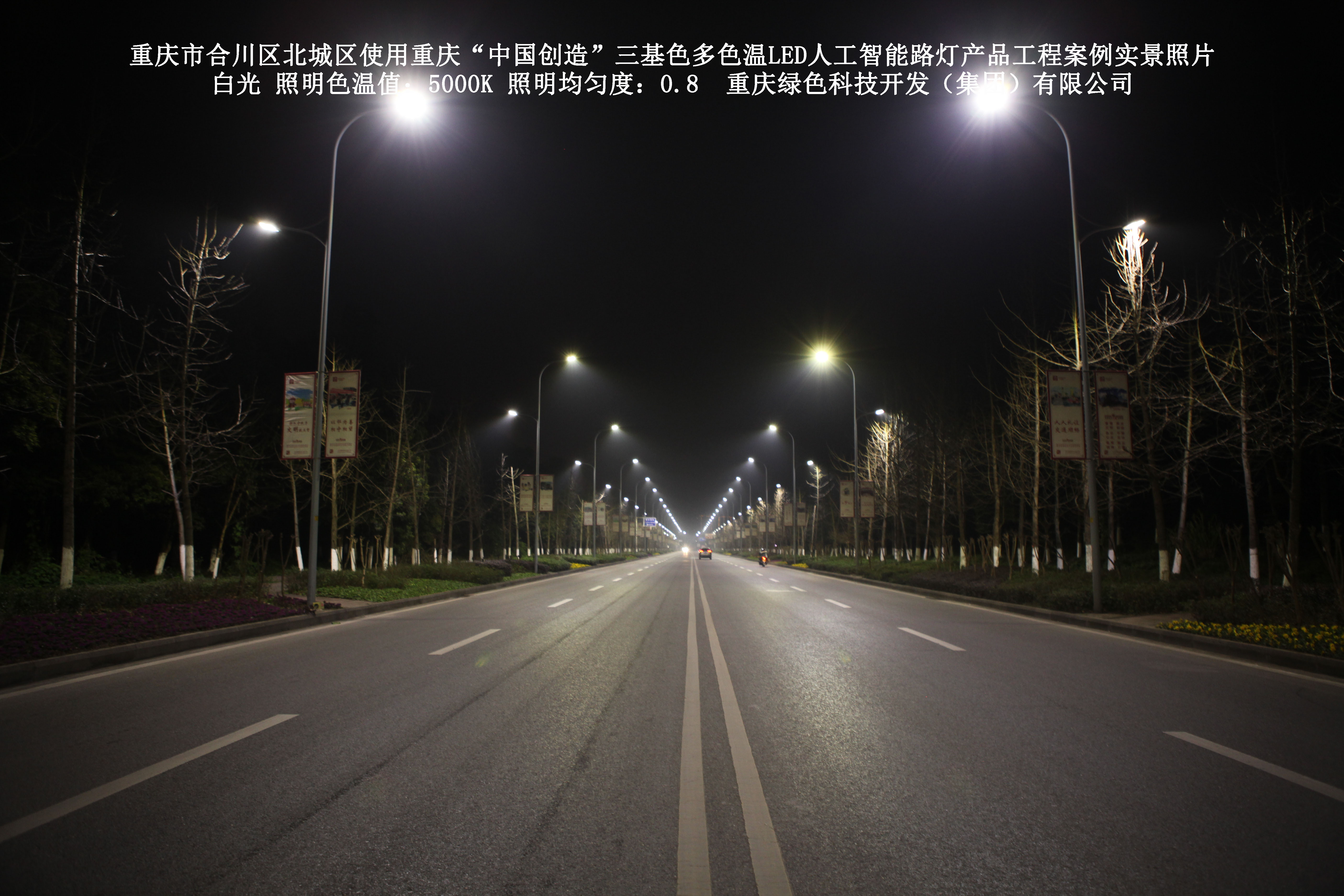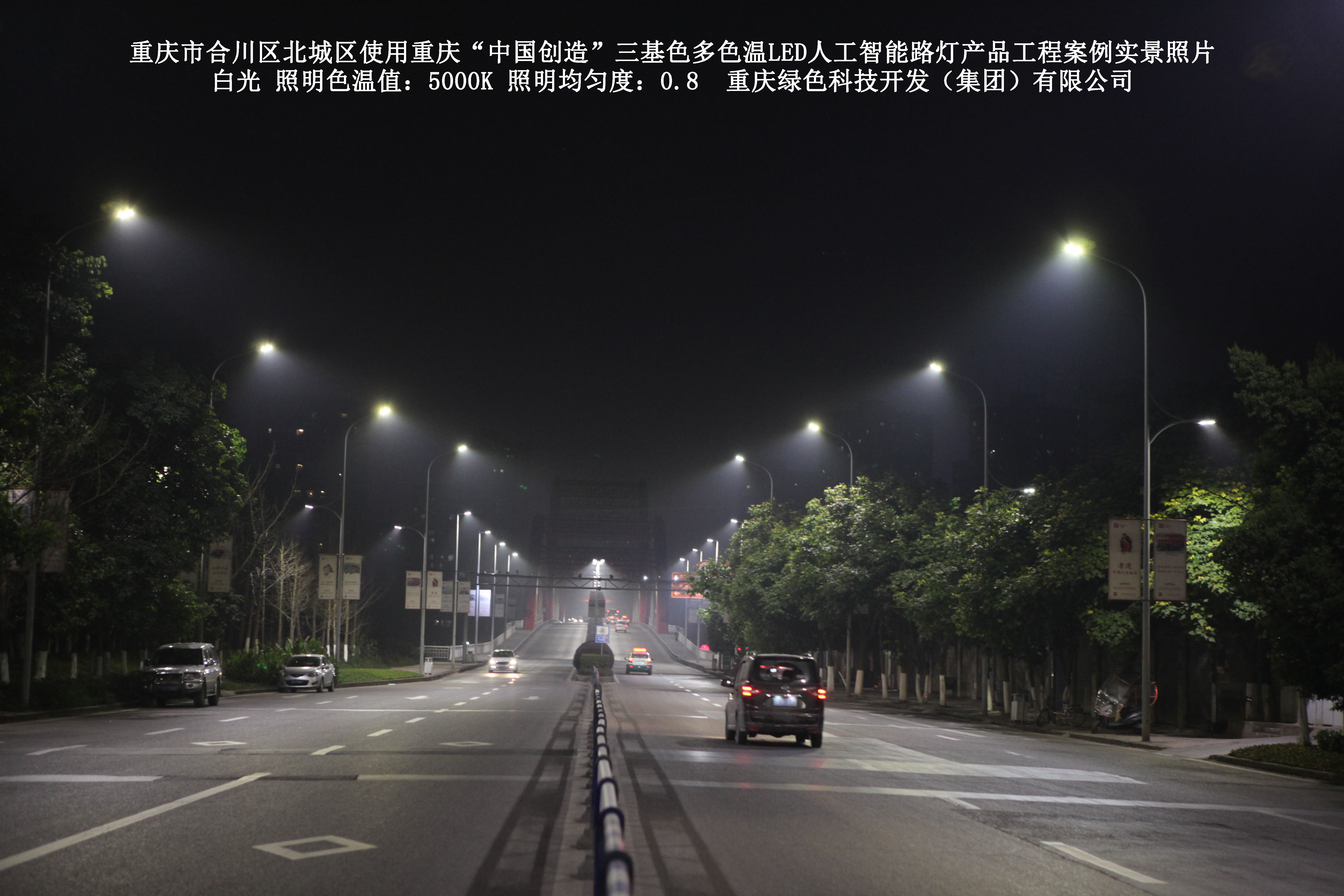 重慶市合川北城區(qū)使用我司研造的重慶“中國創(chuàng)造”三基色多色溫 LED人工智能路燈產品工程案例