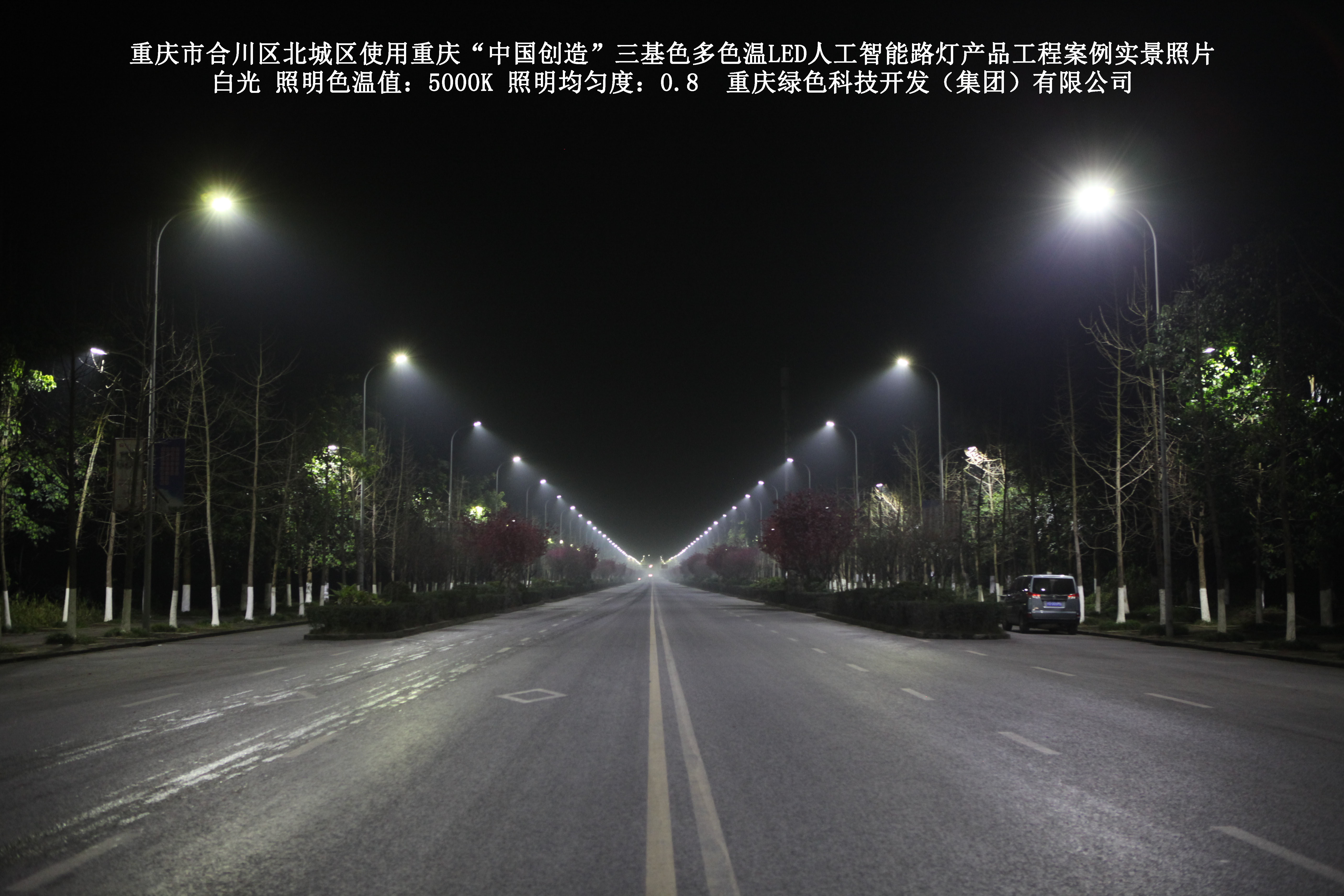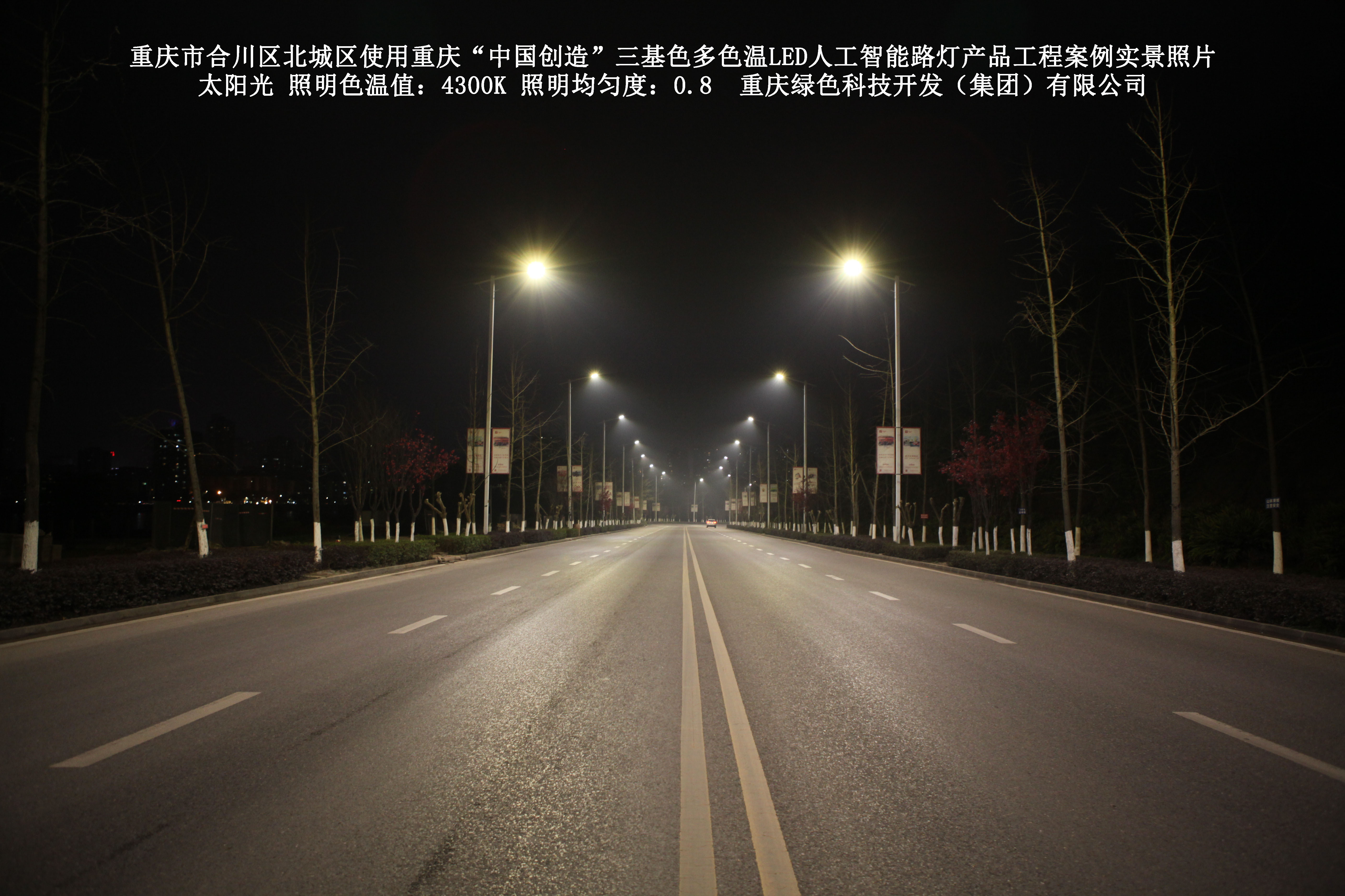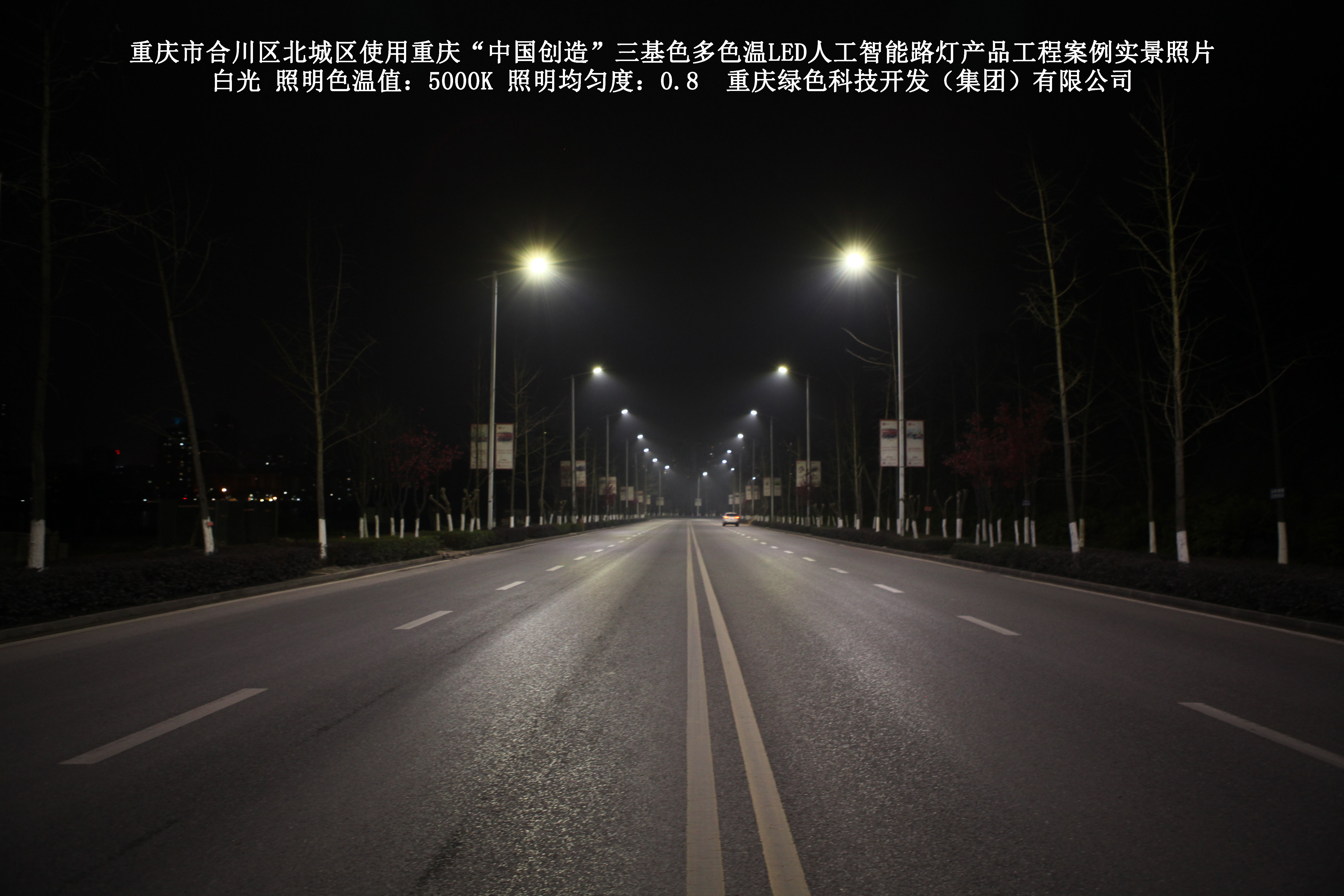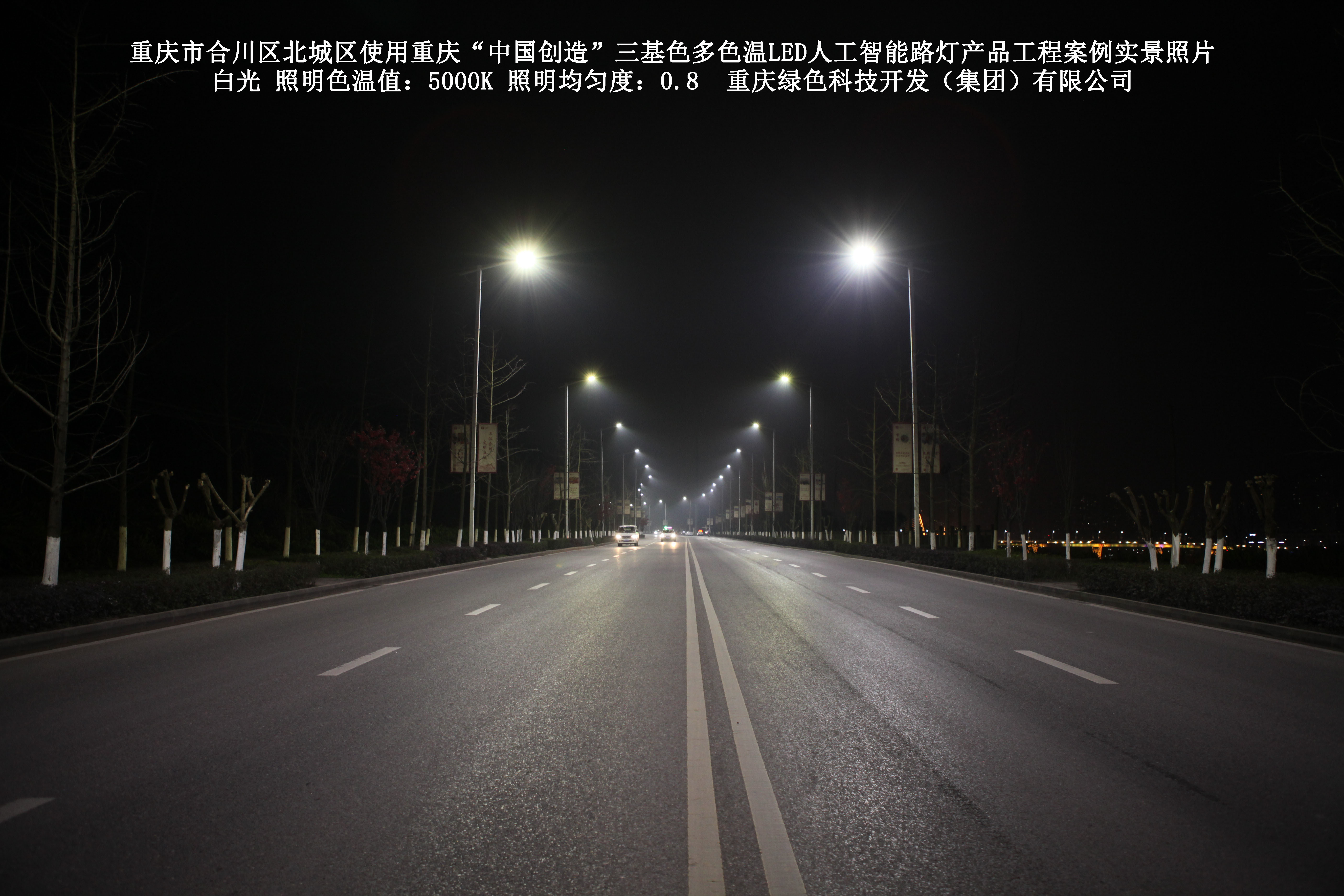 重慶市合川北城區(qū)使用我司研造的重慶“中國創(chuàng)造”三基色多色溫 LED人工智能路燈產品工程案例