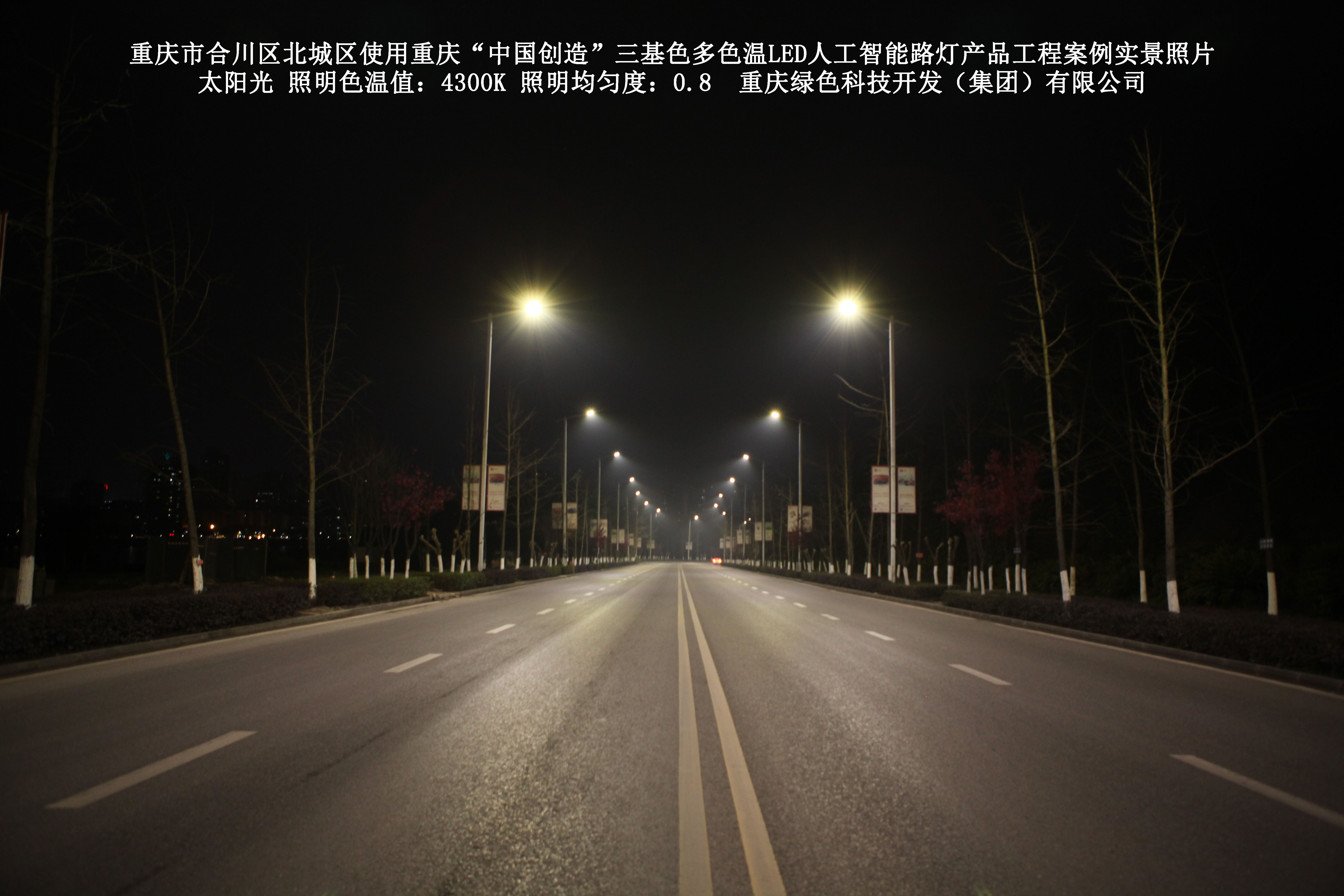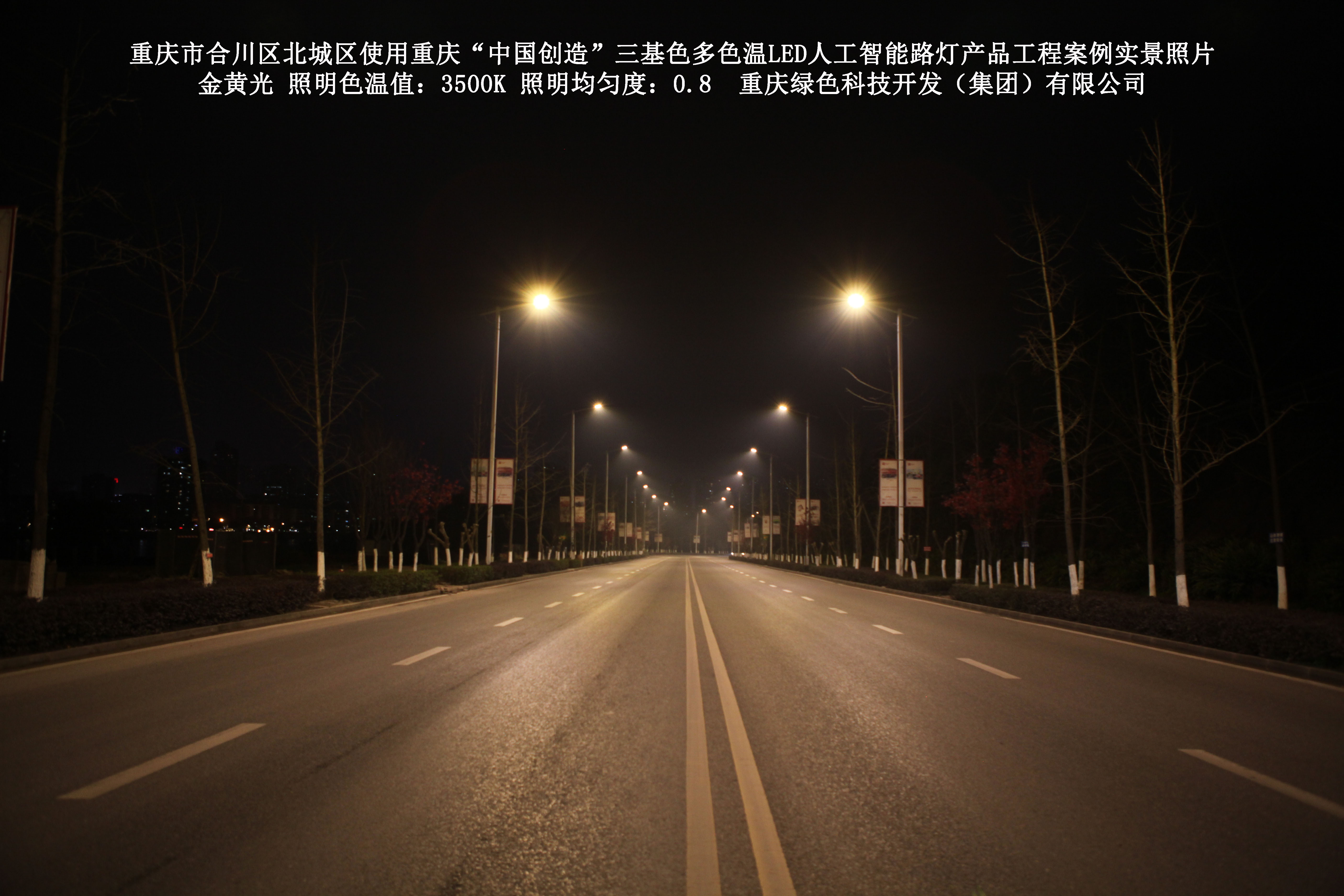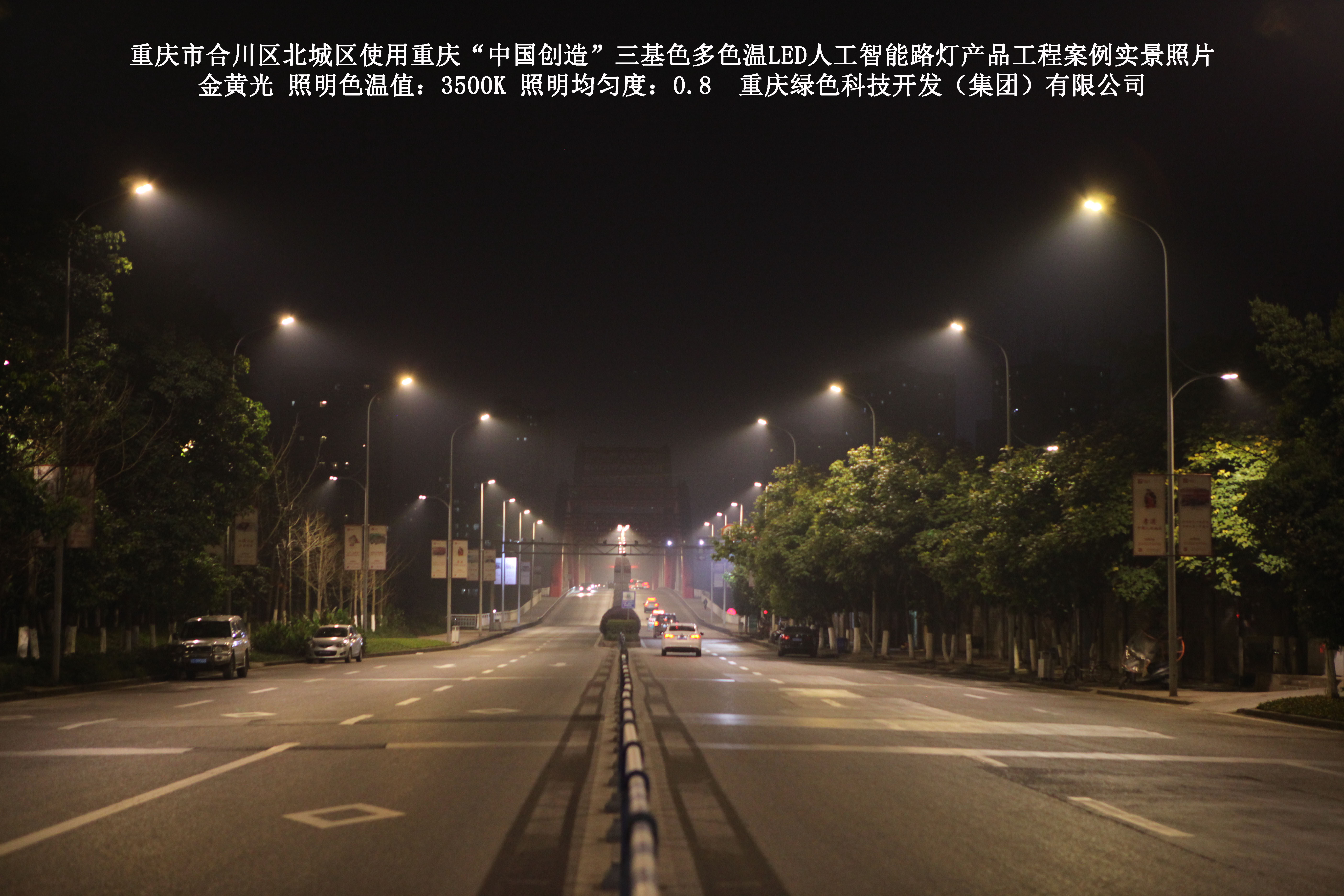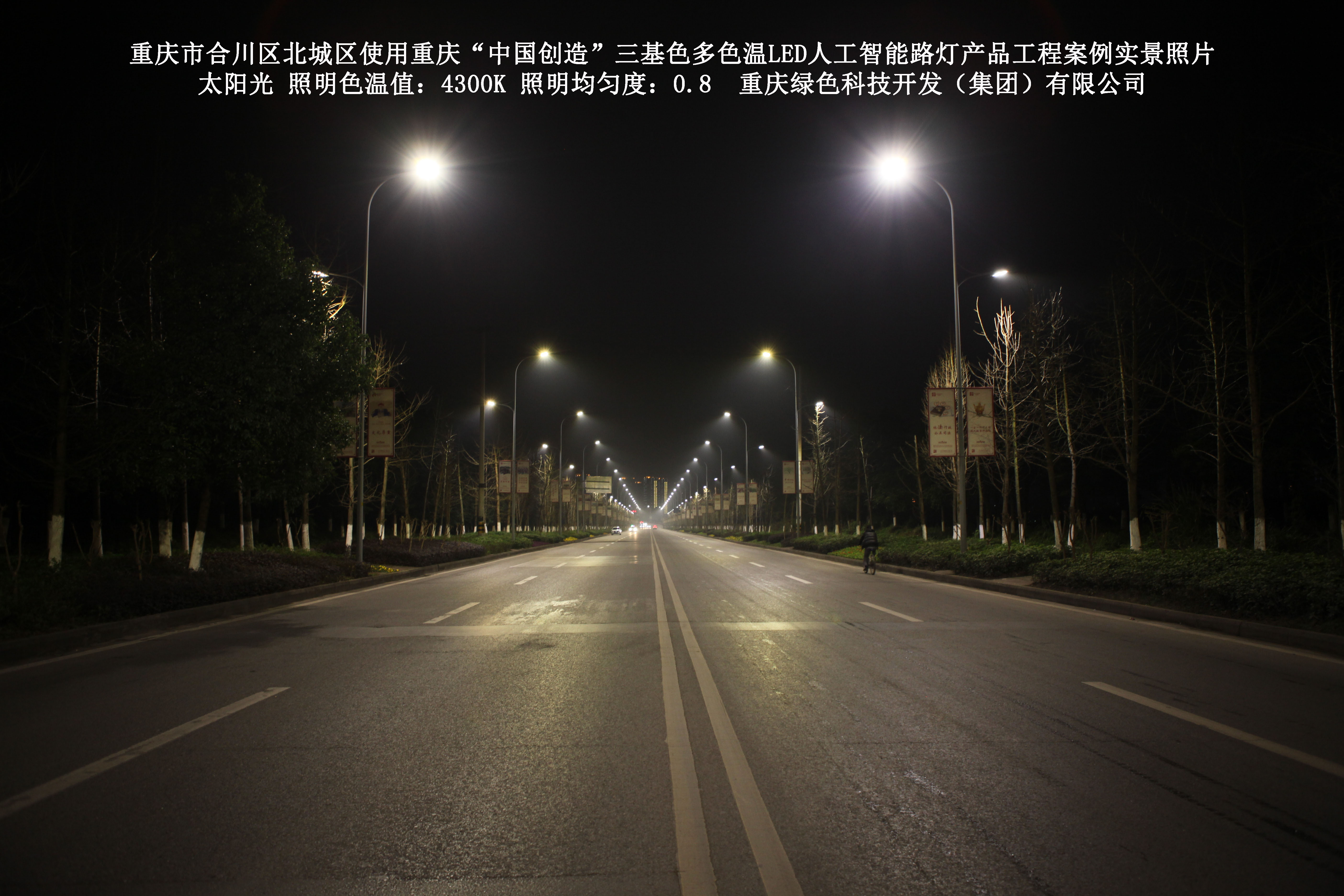 重慶市合川北城區(qū)使用我司研造的重慶“中國創(chuàng)造”三基色多色溫 LED人工智能路燈產品工程案例