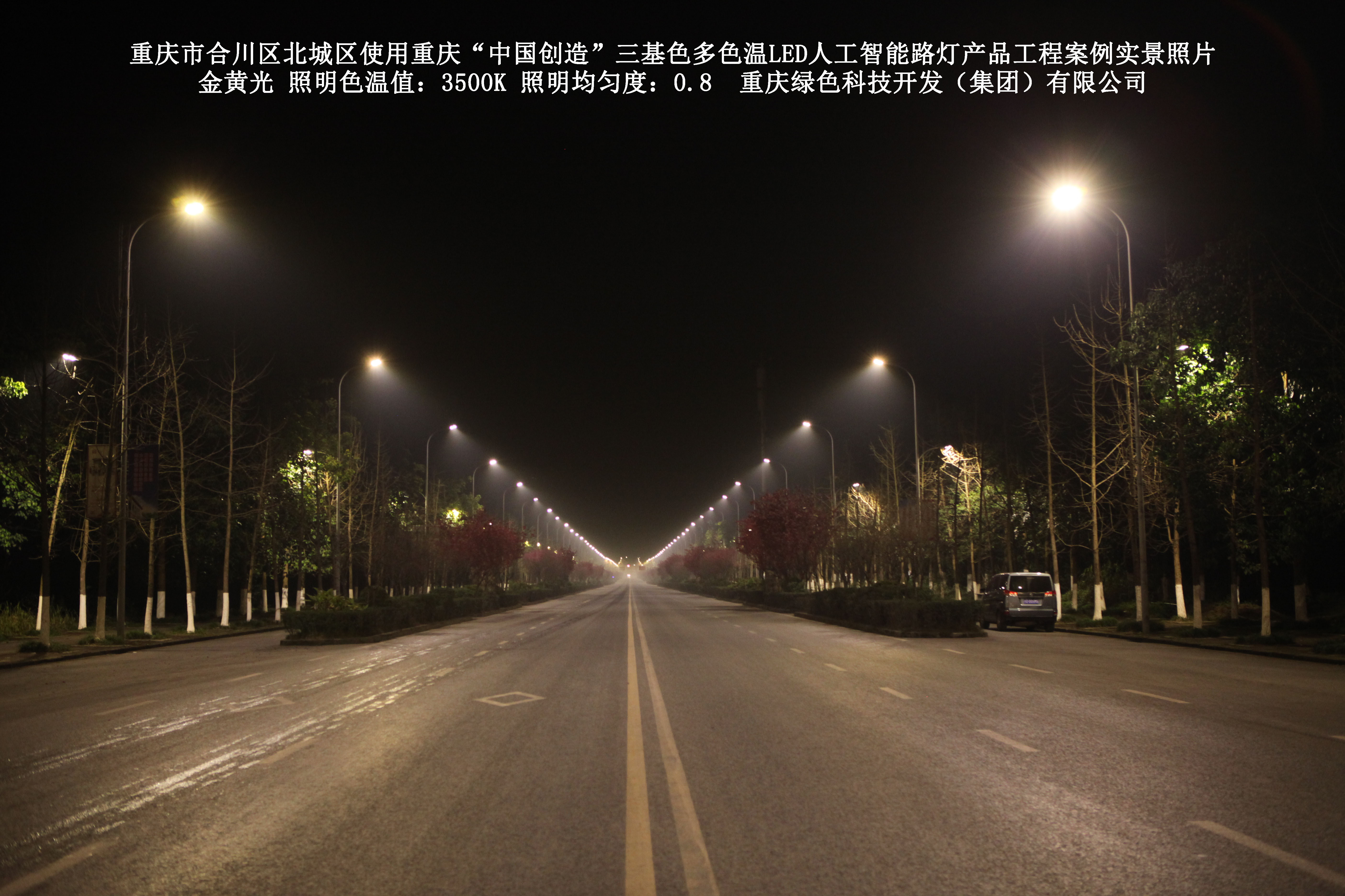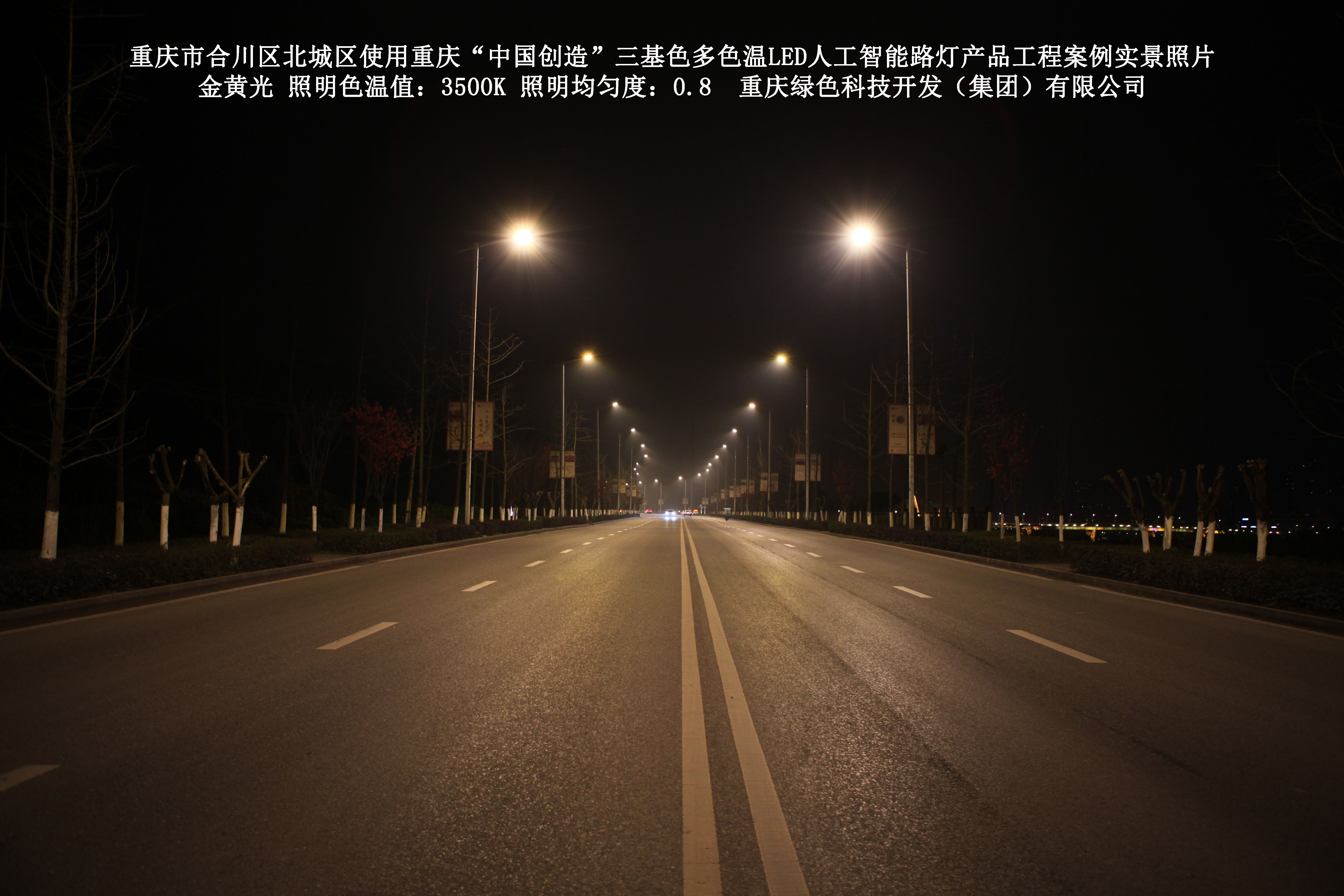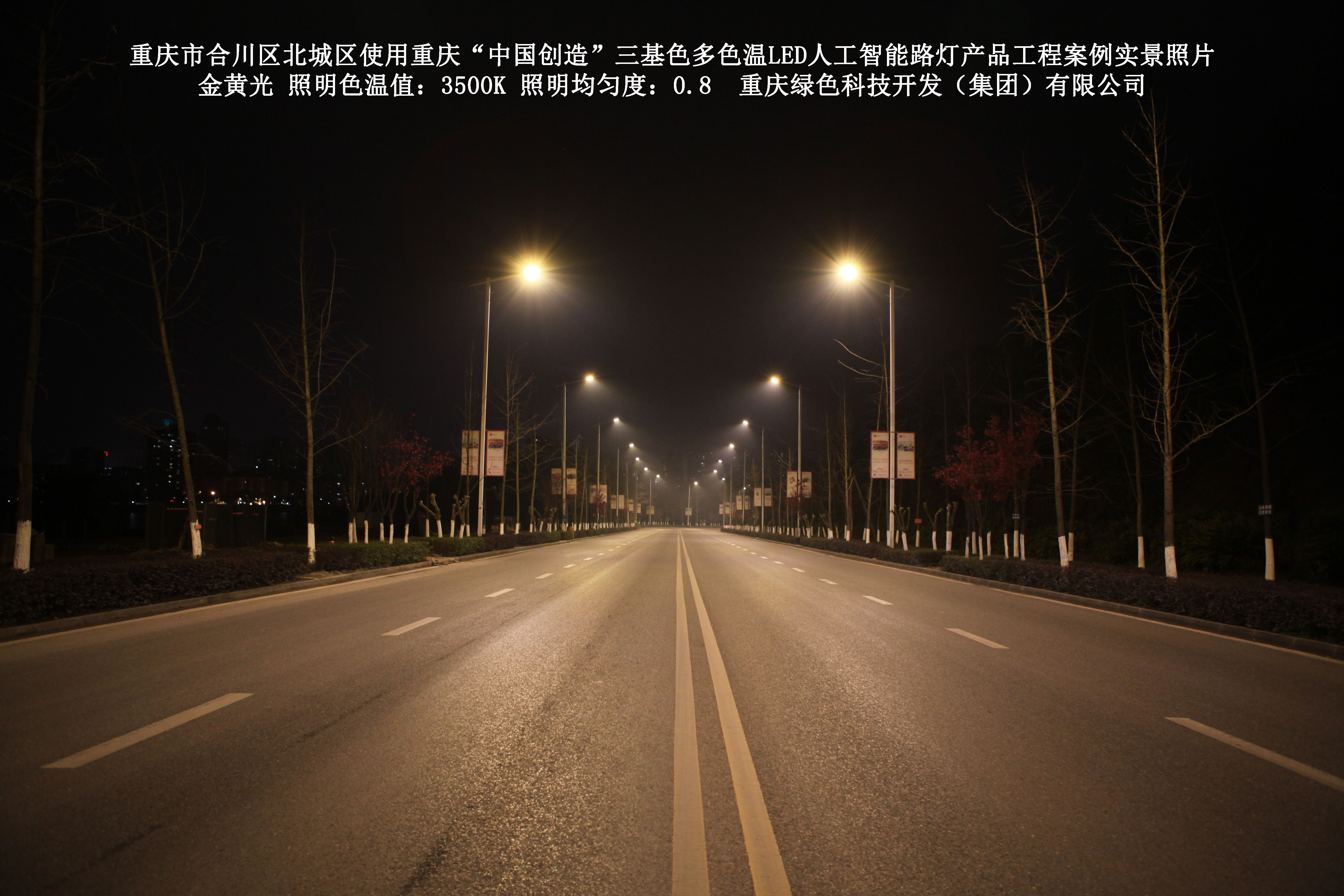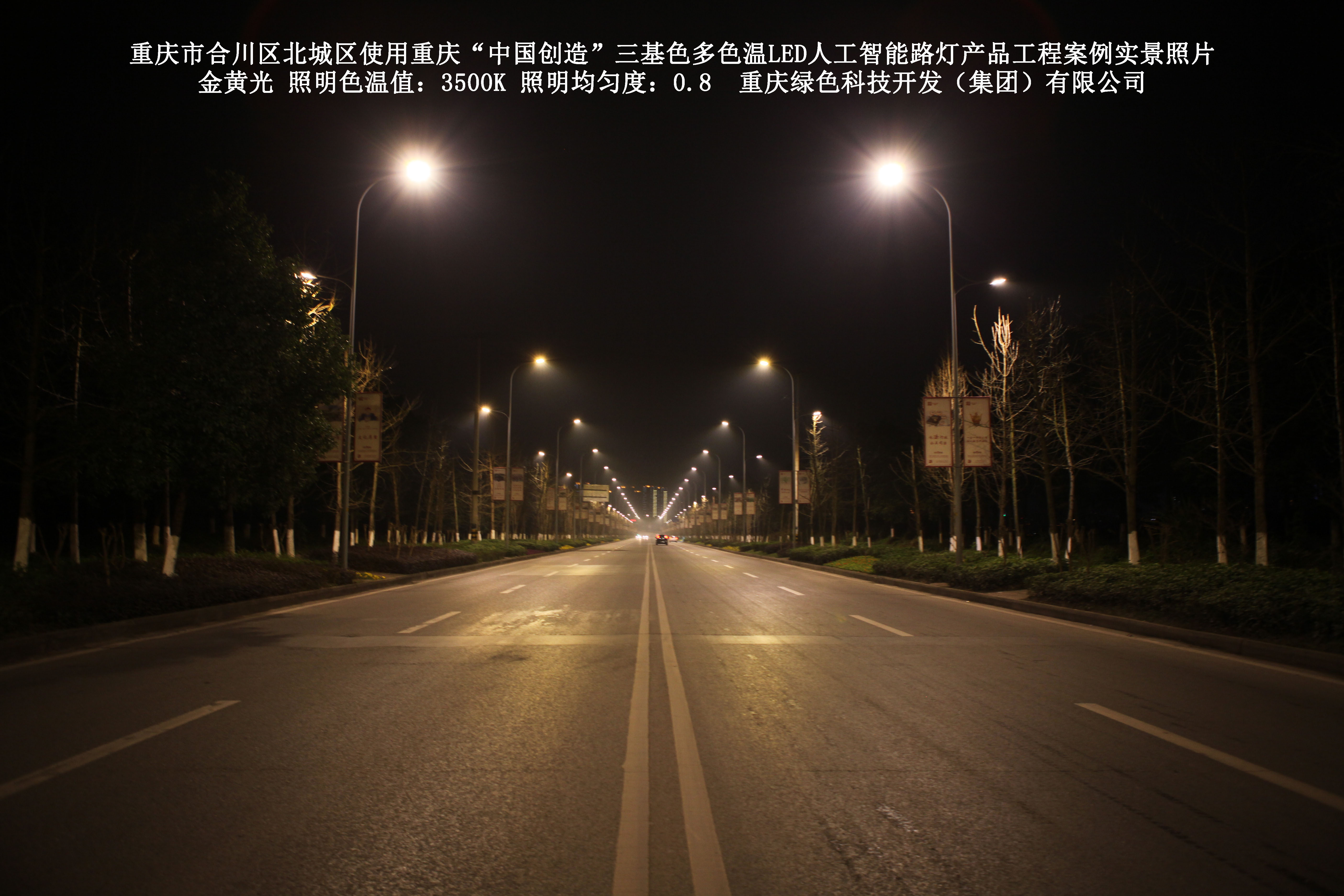 重慶市合川北城區(qū)使用我司研造的重慶“中國創(chuàng)造”三基色多色溫 LED人工智能路燈產品工程案例
