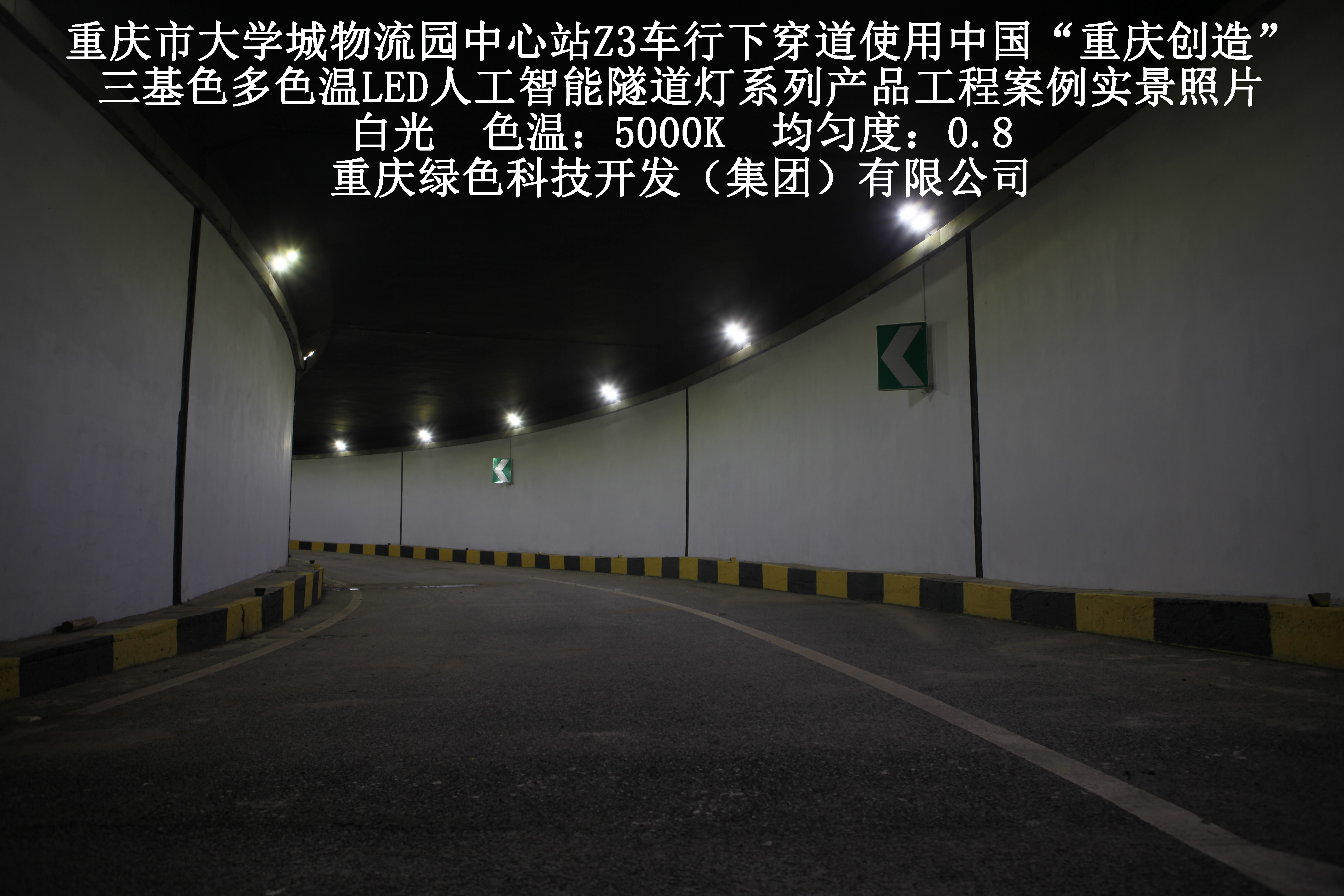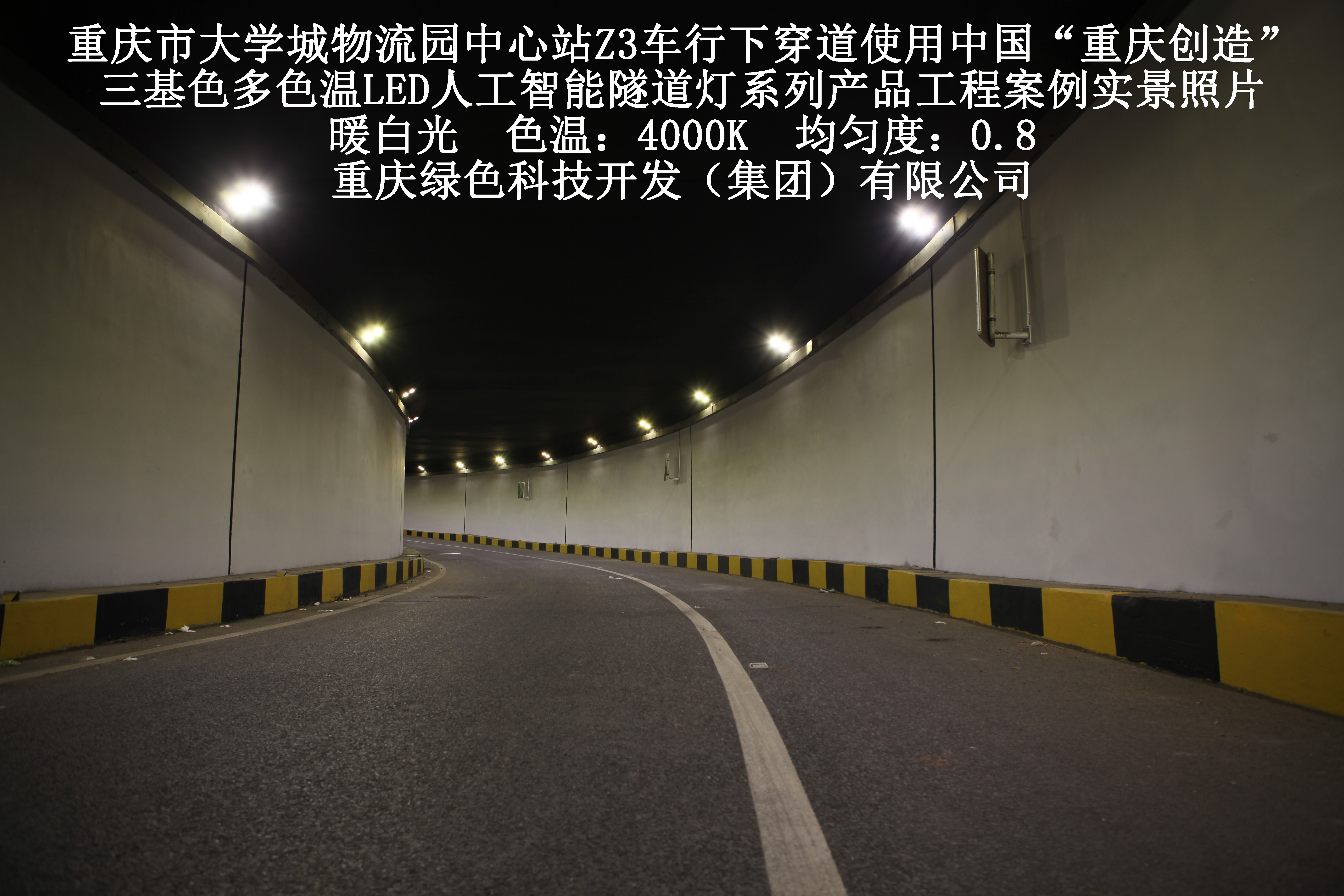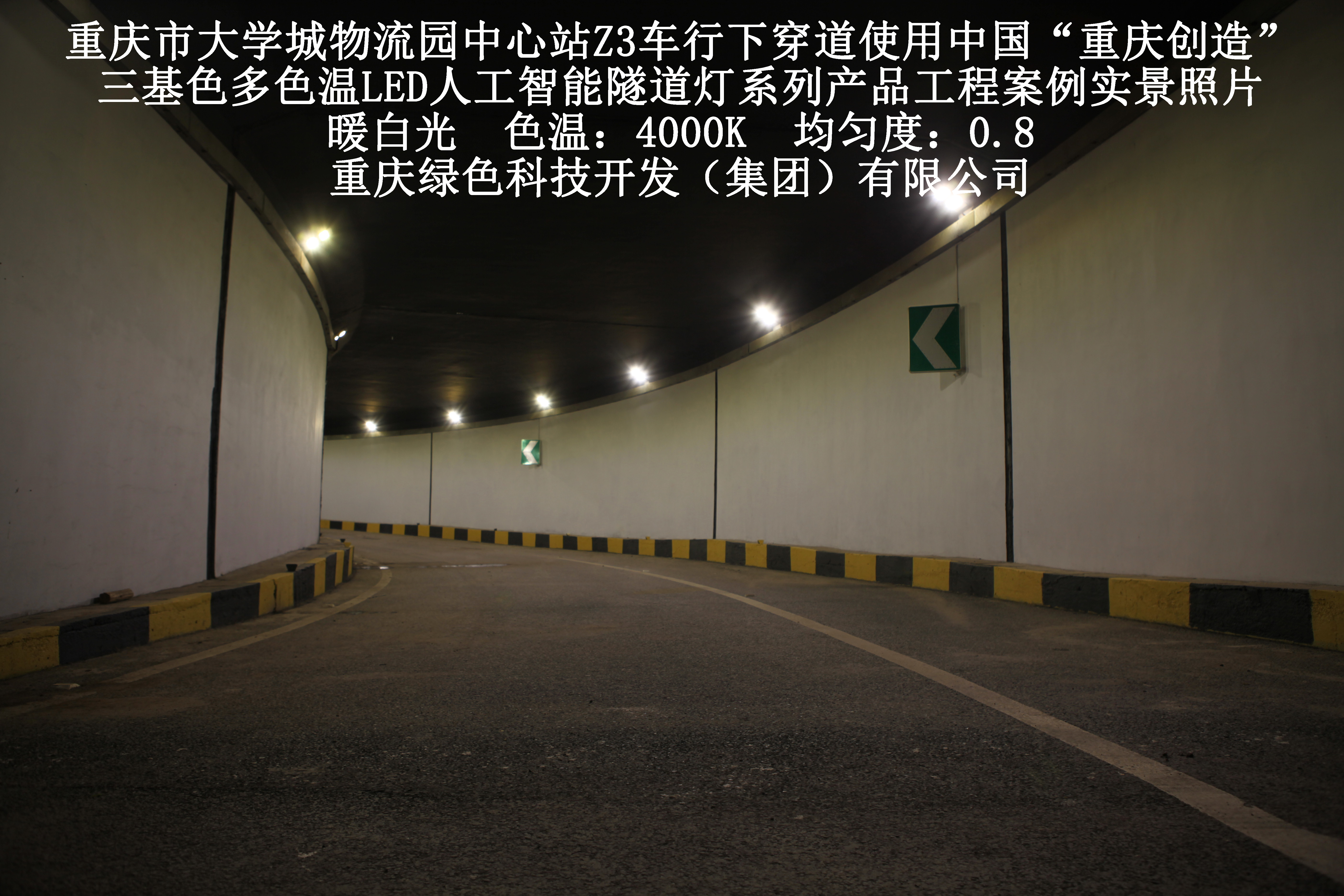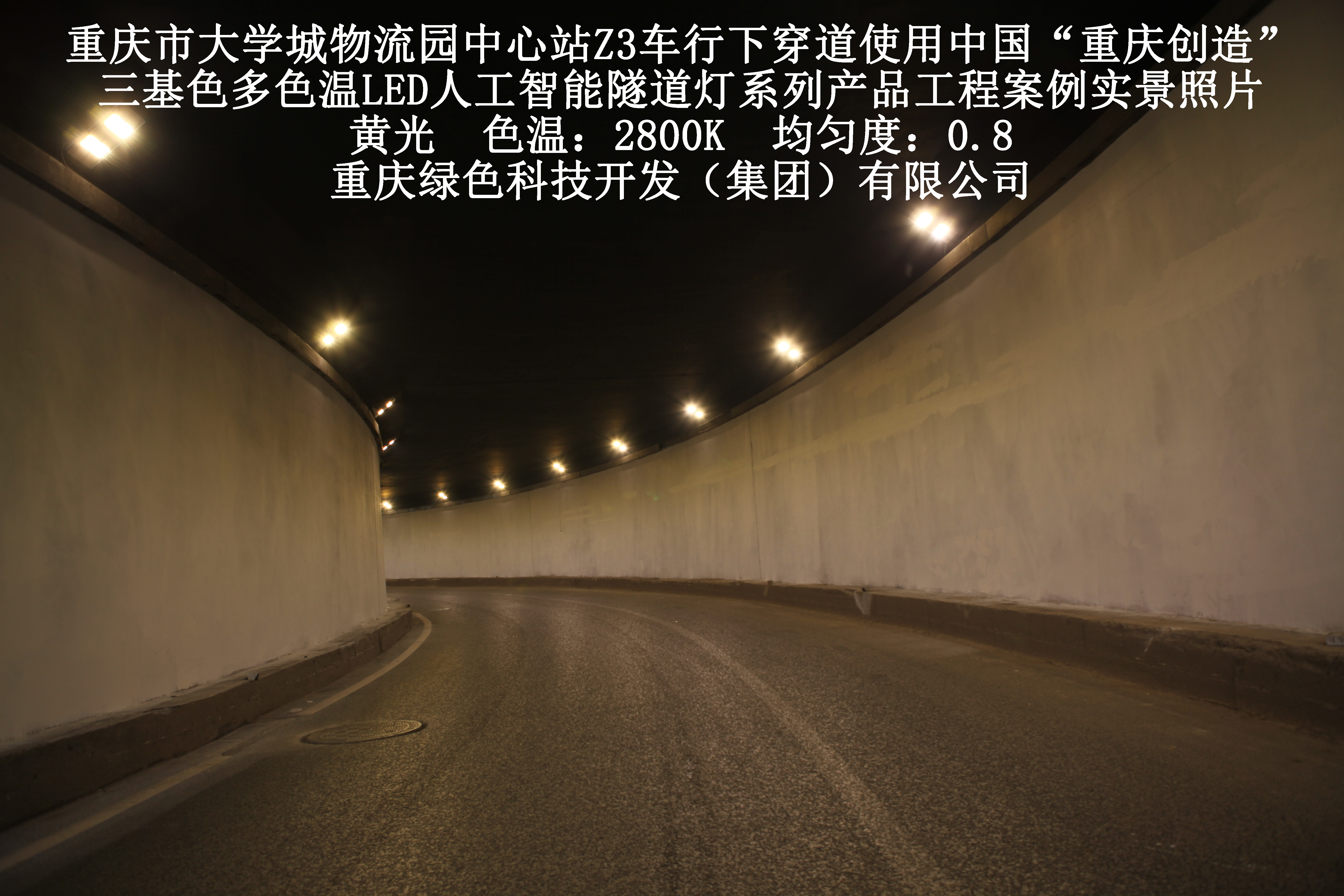 2019年3月,重慶市大學(xué)城物流園中心站Z3車行下穿道使用我司自主研發(fā)制造的,重慶“中國創(chuàng)造”三基色多色溫LED人工智能隧道燈系列產(chǎn)品,實施了市政設(shè)施品質(zhì)提升工程(工程案例實景照片附后)。此項目的實施,極大地提高了隧道內(nèi)照明清晰度、燈光均勻度、舒適度及照明安全性,實現(xiàn)了隧道照明系統(tǒng)的智能化管理。